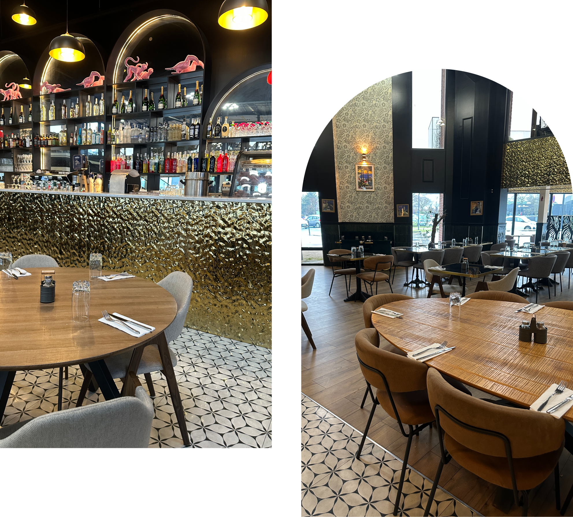Entre touches dorées, jeux de lumière et lignes élégantes, le restaurant offre une atmosphère accueillante et dynamique. Les terrasses chauffées et fermées complètent ce cadre moderne, idéal pour des repas en famille, entre amis ou entre collègues, à proximité des zones commerçantes et des lieux touristiques du secteur.